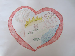 Draw in your journal, a picture of your inner smile. What shape does it take, any colors, is nature involved, people, animals, your internal organs? Here is my rendition of my inner smile (please remember that yours truly is not an artist)