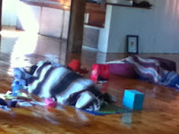Create a big enough folded blanket to place between the knees to align the legs in Tadasana. Add a folded blanket to rest your top arm on. Recline on a side that is comfortable, resting your head on a blanket. A neck roll can go under the ankles for support. Bolster can rest along spine for further support and grounding. Finally, cover yourself with a blanket from head to toes. Sink down with each long exhalation. Mantra to accompany pose “I am safe, I am supported”.