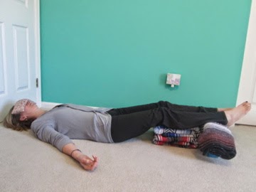 Benefits: Supportive, releasing pose for legs, feet, pelvis. Spinal realignment. Helps legs drain of fluid and promotes circulation.