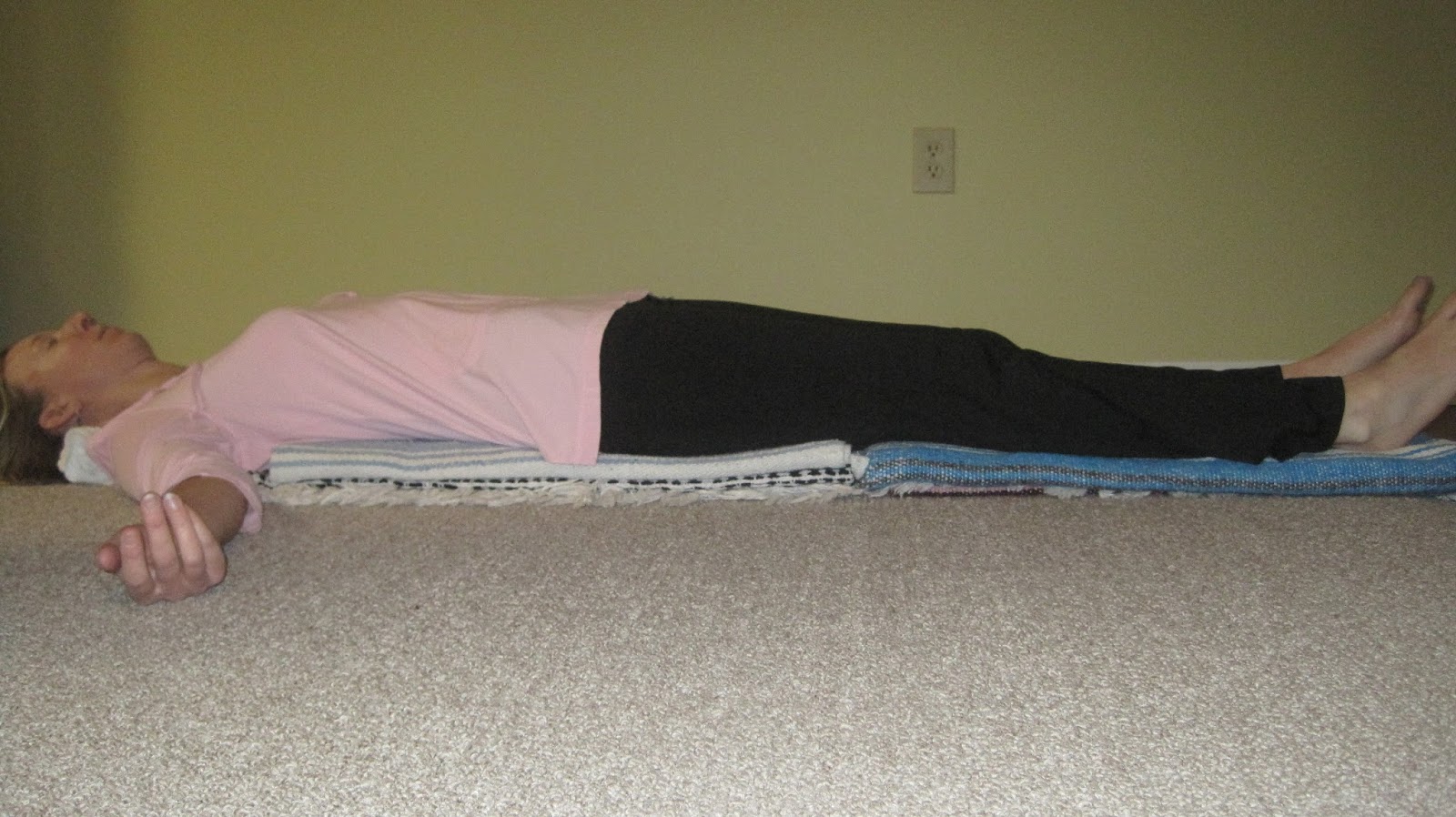 Props: blankets or bolster, depending upon the amount of opening you desire. Neck roll, eye pillow.