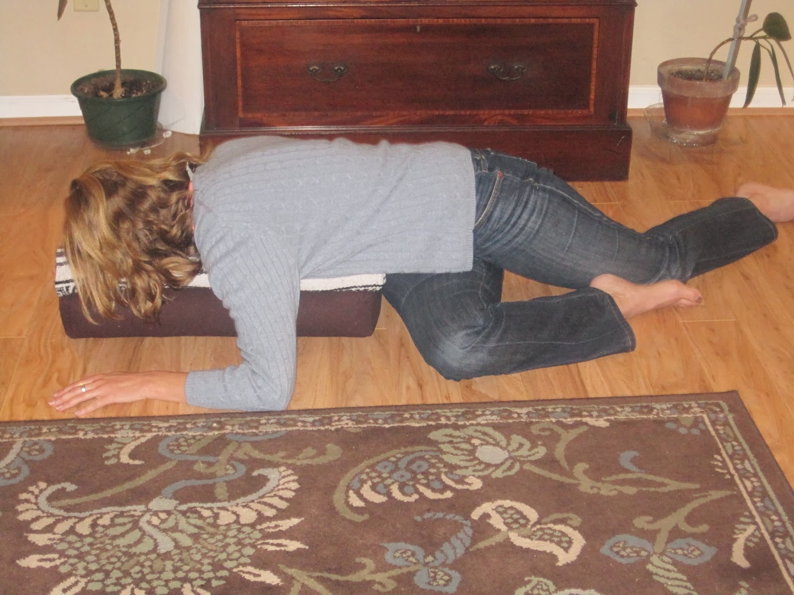 Props: Wall, bolster, 2 blankets, Can add additional blankets for more support under knees or elsewhere.